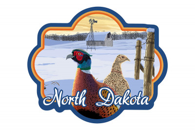 North Dakota - Pheasants - Contour - Lantern Press Artwork
