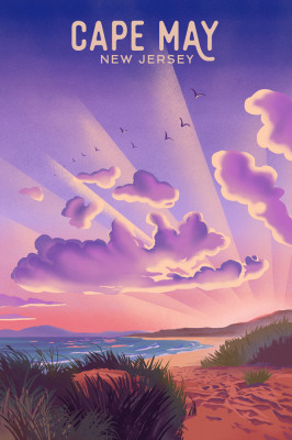 Cape May, New Jersey - Lithograph - New Shows Nightly - Beach Sunset