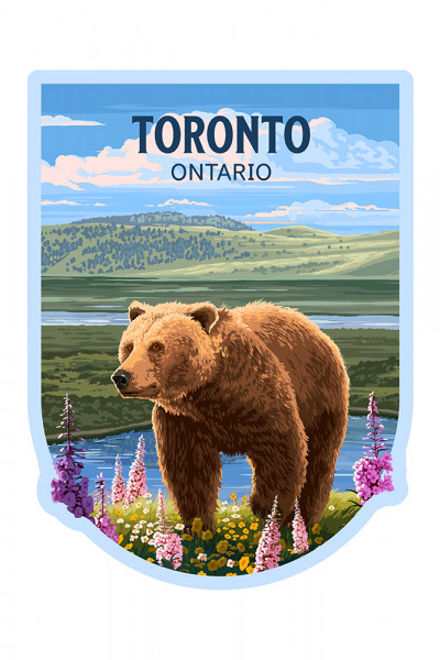 Toronto, Ontario - Painterly - Grizzly Bear in Meadow - Contour