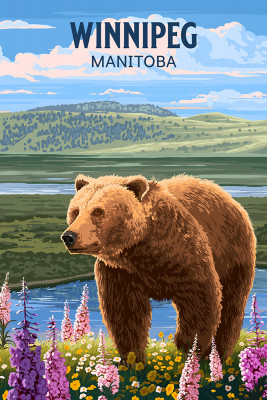 Winnipeg, Manitoba - Painterly - Grizzly Bear in Meadow