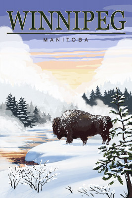 Winnipeg, Manitoba - Painterly - Bison Snow Scene