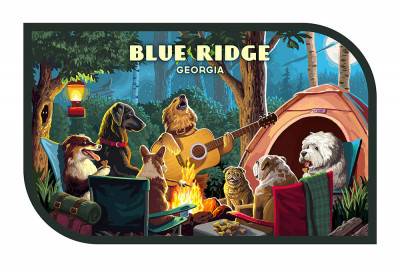 Blue Ridge, Georgia - Painterly - Pack Life - Dogs Around Campfire - Contour