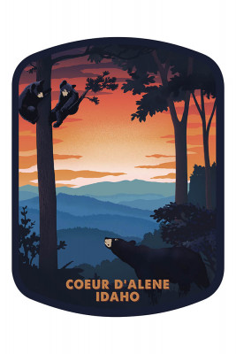 Coeur d'Alene, Idaho - Black Bear Family - Sunset - Contour