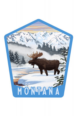 Montana - Winter Scene - Moose - Contour