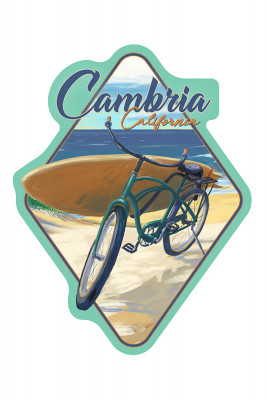 Cambria, California - Painterly - Beach Cruiser on Beach - Contour