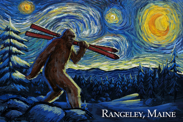 Rangeley, Maine - Starry Night - Winter Bigfoot with Skis