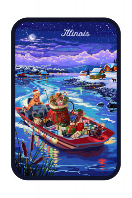 Illinois - Happy Howlidays - Painterly - Santa Dog & Helpers - Contour