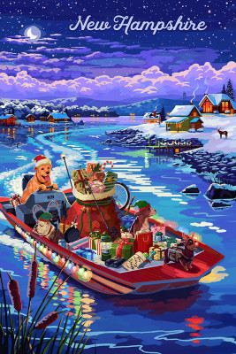 New Hampshire - Happy Howlidays - Painterly - Santa Dog & Helpers