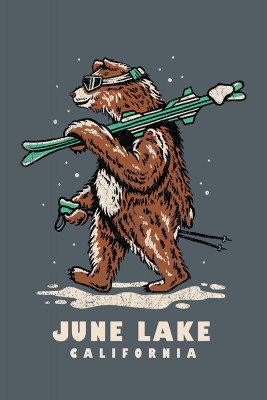 June Lake, California - Distressed Vector - Ski Brown Bear