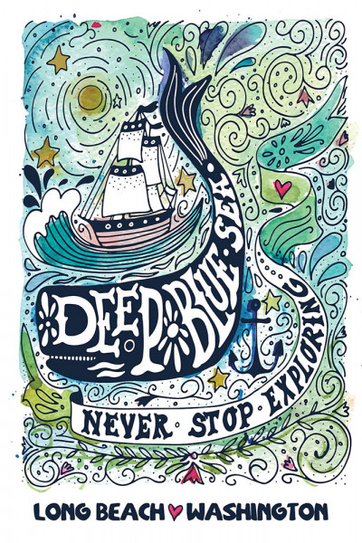 Long Beach, Washington - Watercolor Whale - Deep Blue Sea