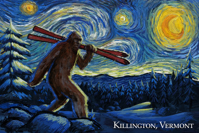 Killington, Vermont - Starry Night - Winter Bigfoot with Skis